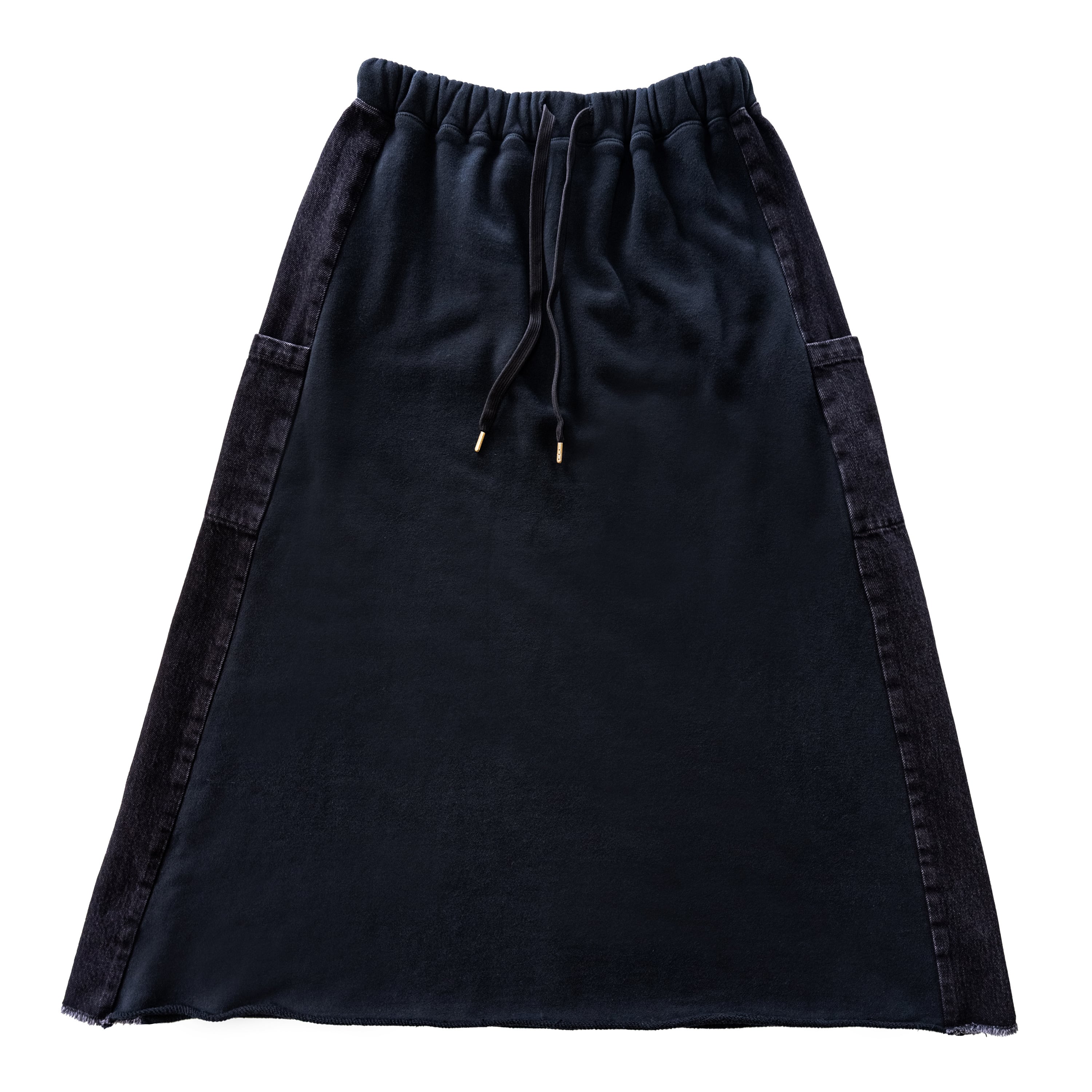 デニムサイドライン裏毛スカート BLACK